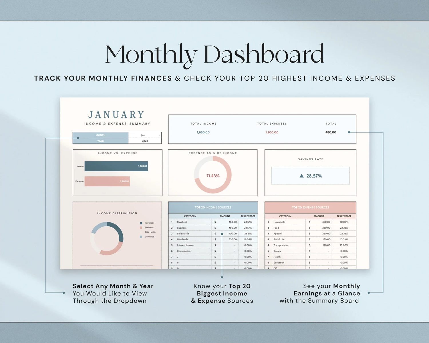 ✓ Avoid overspending with clear categories and easy-to-follow trackers